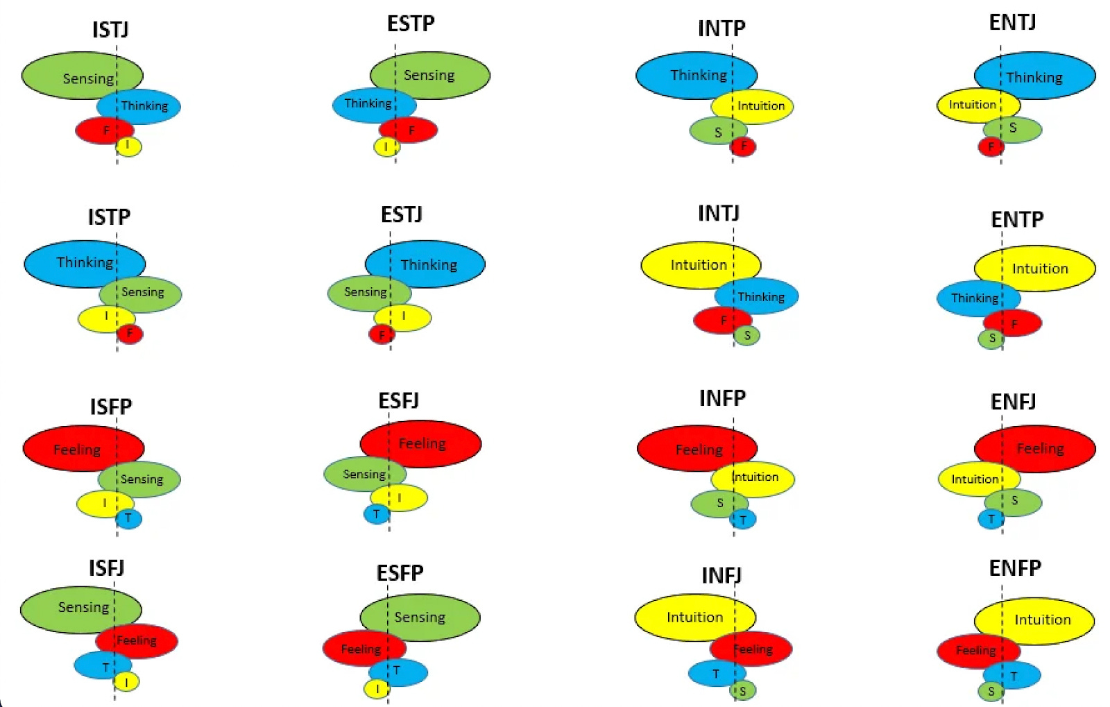 Inferior Function – Your weakest, least conscious function. Often feels like a blind spot or source of stress, but also holds the greatest potential for growth.
